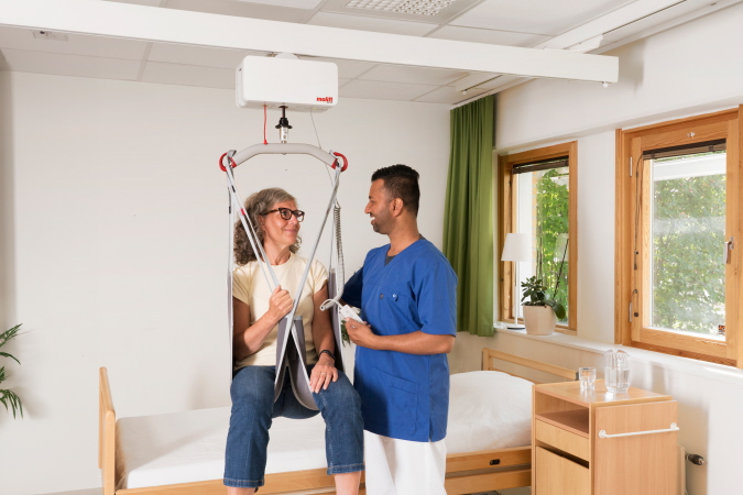 Ceiling Lift solutions play an integrated part in the care environment in all care settings and assist caregivers when lifting and transferring people with impaired mobility. A wide range of rails and motors means that tailored solutions can be applied to various situations, allowing for comfortable lifting and an enhanced work environment for caregivers.
