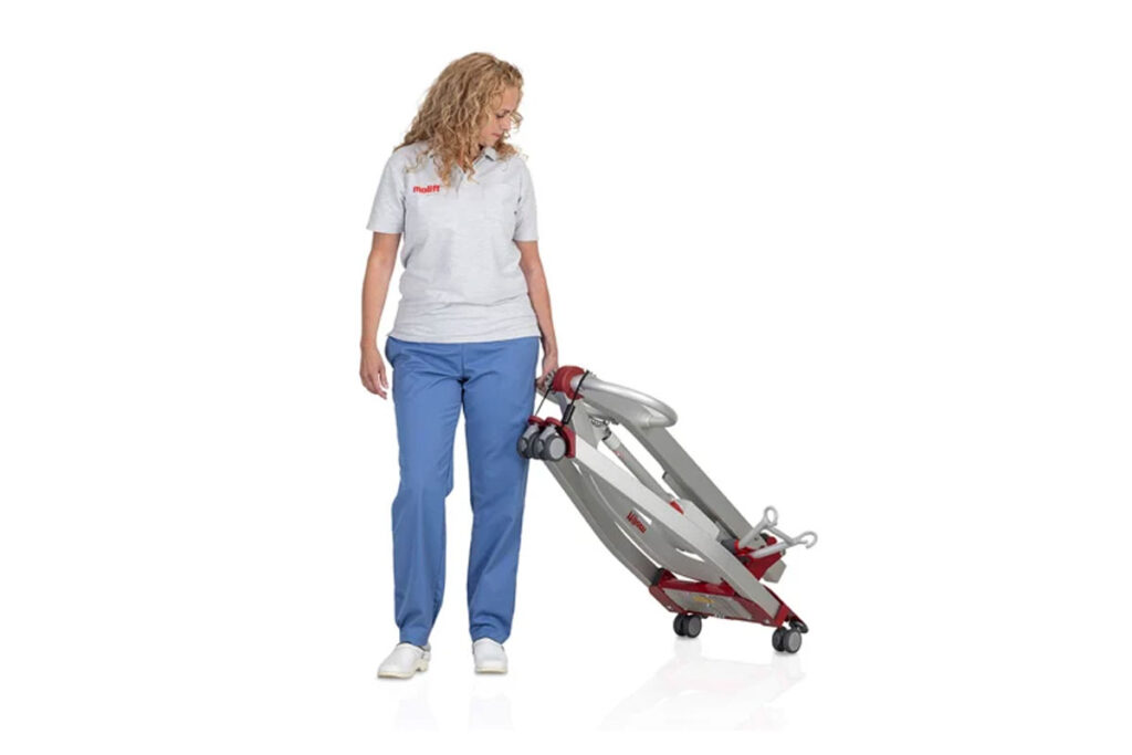 - Equipped with Molift’s unique push bar that provides multiple and flexible grip possibilities for improved caregiver ergonomics