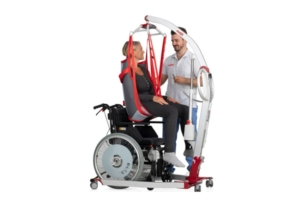 - Integrated standard 4-point sling bar ensures a comfortable and spacious lifting position for the user